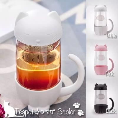 かわいい猫デザインのティーポットとマグの一体型、Tポットねこマグ(=^x^=)♪