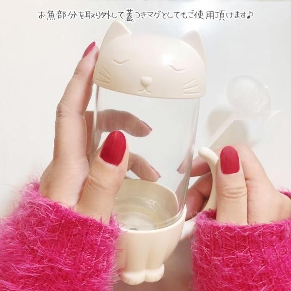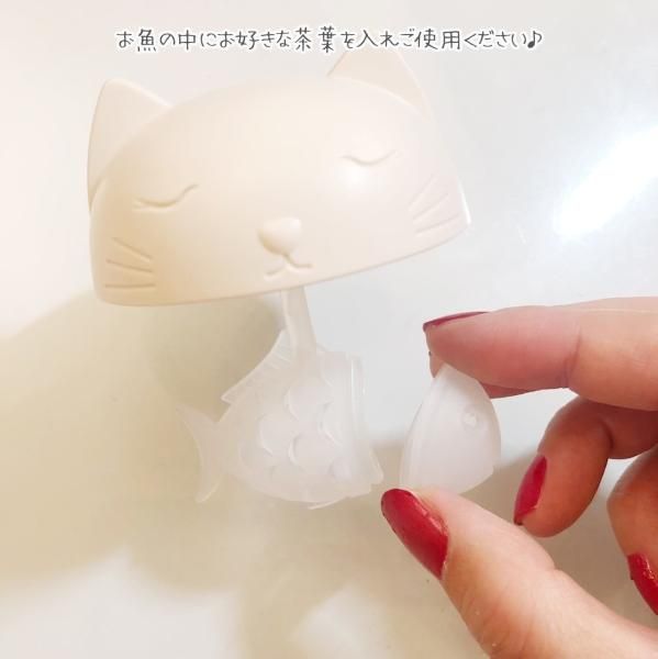 お魚さんの中に好きなお茶っ葉を入れたら、お湯を注いだマグにねこ蓋ごと投入するだけ♪